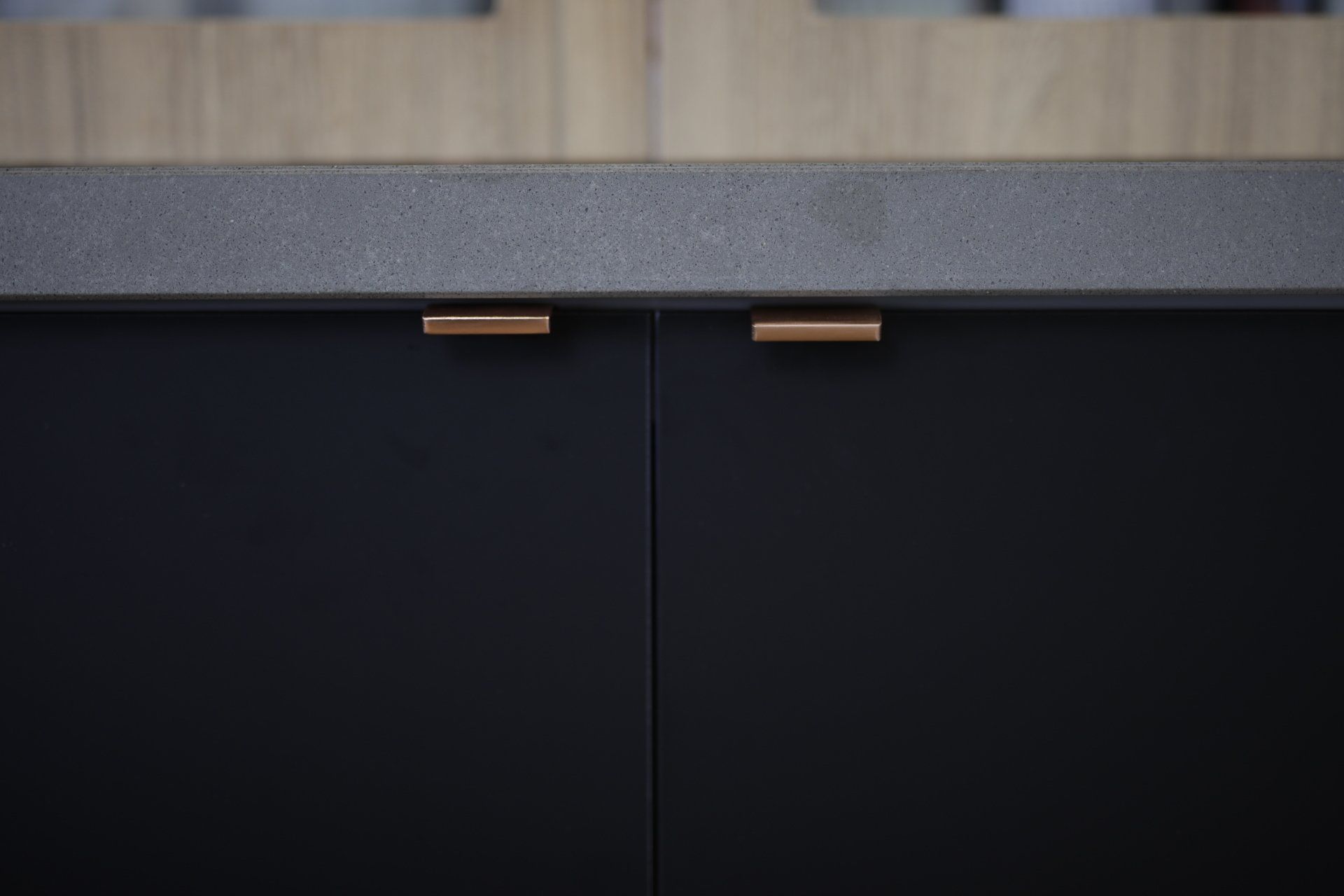 “We knew the basic colour scheme we were working towards but Dan perfectly recommended the style and design placement of the black, timber, white and concrete elements. It just feels balanced and perfect for the space. And I love the black kickers contrast on the timber floor.”